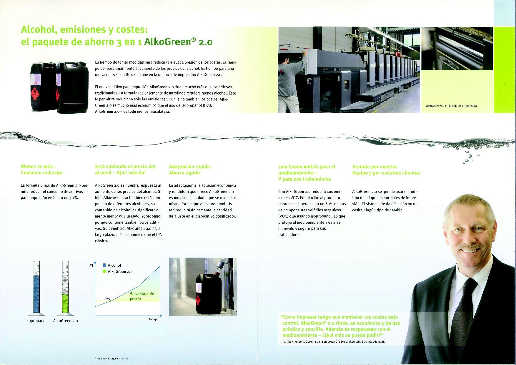 ALKOGREEN 2.0 / Uncategorized / Por admin ALKOGREEN 2.0La composición de este innovador producto contiene de un 70%- 80% de alcohol isopropílico y el porcentaje restante de un tensoactivo que no se evapora. Solicita información Siempre respetando el medio ambiente